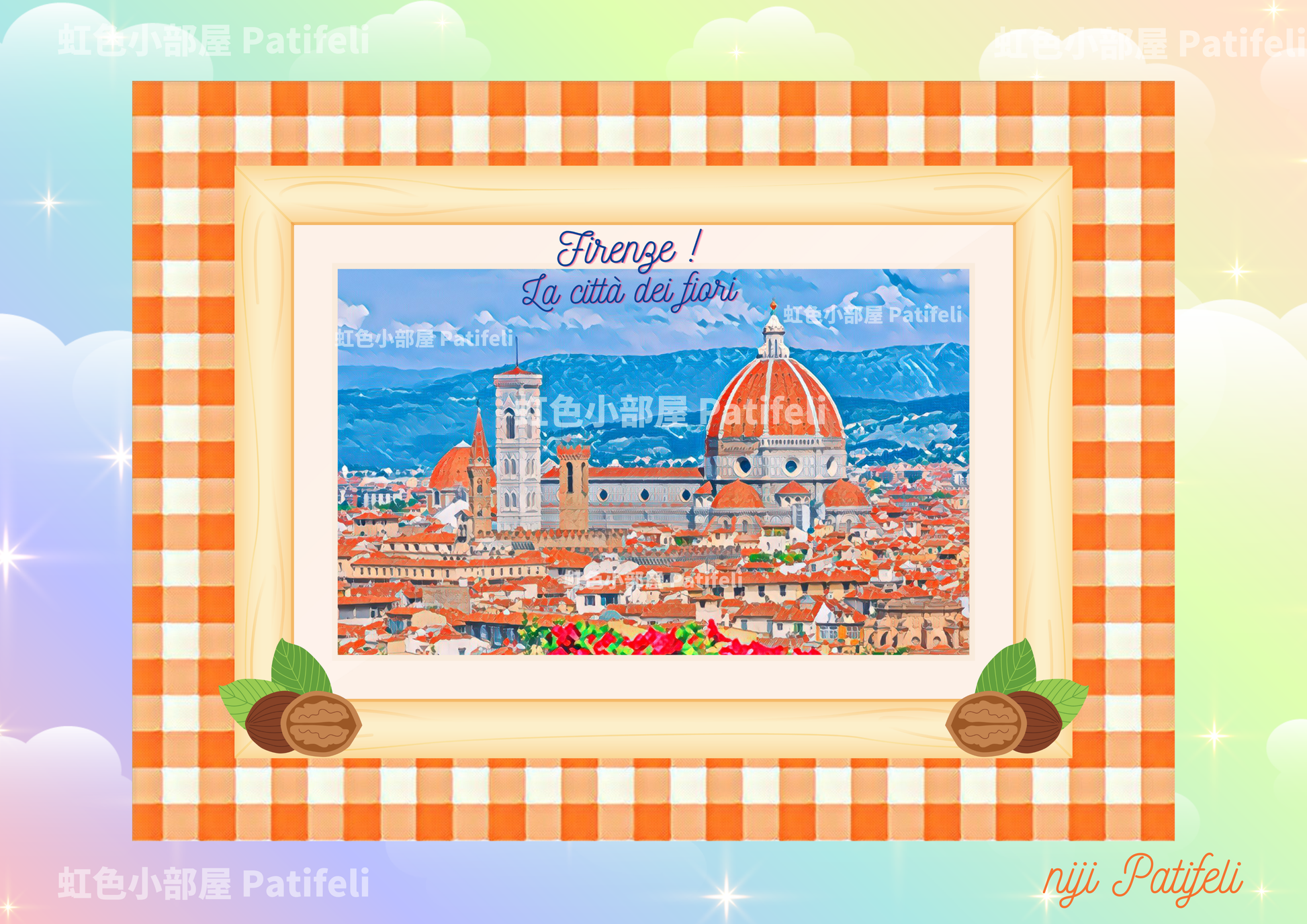【A】デジタルアート A3【🌈南欧パティオ空間】「イタリアの美しい花の都、フィレンツェ」